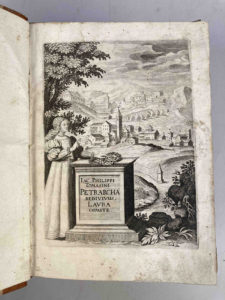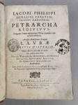 Outre une biographie de Laure, le volume comprend l’édition de cinq biographies du poète, dont trois jusqu’alors inédites, celles de Pier Paolo Vergerio, Giannozzo Manetti et Ludovico Beccadelli, auxquelles s’ajoutent celles de Leonardo Bruni († 1444) et d’un anonyme, aujourd’hui attribuée à Sicco Polenton (1375-1448). Le volume de surcroît est illustré de figures gravées par H. David et Giorgio Georgi [4], qui offraient une première et très complète documentation pétrarquienne " (Extrait de la riche notice de la Fondation Barbier-Mueller pour l'étude de la poésie italienne de la Renaissance).
