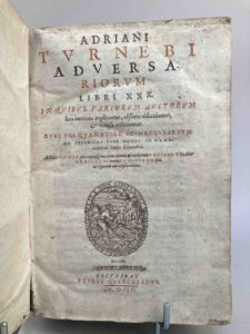 TURNEBE, Adrien (1512-1565). Adversariorum Libri XXX. in quibus variorum auctorum loca intricata explicantur, obscura dilucidantur, & vitiosa restituuntur. Opus perquamutile ac necessarium ad infinitos pene nodos in humanioribus literis soluendos....