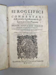 Rare édition originale de la traduction en italien de cet ouvrage sur la signification occulte des hiéroglyphes égyptiens, publiée pour la première fois en latin à Bâle en 1556. Valeriano, secrétaire du Cardinal Jules de Médicis, avait un accès libre aux collections égyptiennes du Vatican, ainsi qu’aux cabinets privés d’Italie.