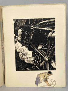 DUBREUIL, Ferdinand. Les hommes du rail. Gravures et dessins originaux. Préface de Claude Farrère. Tours, Arrault et Cie. 1946. In-4°, en feuilles : chemises rempliées ; chemise et étui cartonné de l'éditeur.