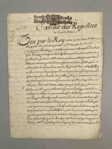"Sa Majesté s'étant fait représentée par lettres patentes du 29 novembre 1657 par laquelle elle a pourvu le sieur Marquis de Coetlogon de l'estat et charge son lieutenant ...et ordonné à tous ses sujets ecclésiastiques, nobles et autres, mesme à tous gouverneurs, officiers et gens de guerre establys en sa garnison ou autrement... elle a considéré qu'après une déclaration si expresse et si formelle de son intention, il ne peut pas être révoqué en doute qu'en l'absence du gouverneur et lieutenant général de Sa Majesté au Gouvernement de Bretagne toutte l'autorité royale soit dévolue et réside en la personne du Marquis de Coetlogon dans l'étendue du département des Quatre Eveschez..."