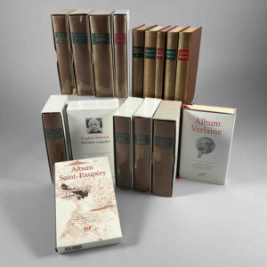 PLEIADE, réunion de 16 volumes dont : Saint-Exupéry, oeuvres, Montherlant, théâtre: Ionesco, théâtre complet ; Claudel théâtre ; Giraudoux, théâtre complet...
