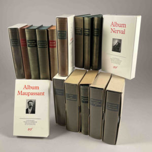 PLEIADE, réunion de 16 volumes dont : Flaubert œuvres; Rimbaud, oeuvres complète ; St Apollinaire, œuvres poétiques ; Verlaine, oeuvres poétiques complètes, Maupassant, romans...