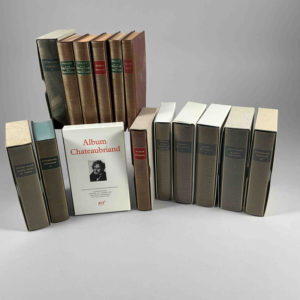 PLEIADE, réunion de 15 volumes dont : Proust, A la recherche du temps perdu; album Chateaubriand; Stendhal, romans ; Victor Hugo, Notre-Dame de Paris; album Sand...