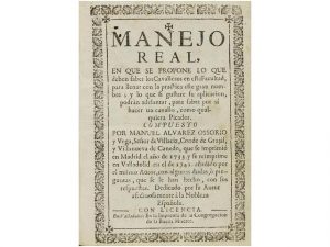 1741. (EQUITACION). ALVAREZ OSSORIO Y VEGA, MANUEL: MANEJO REAL, EN QUE SE PROPONE LO QUE DEBEN SABER LOS CAVALLEROS EN ESTA FACULTAD, PARA LLENAR CON LA PRACTICA ESTE GRAN NOMBRE, Y LO QUE GUSTARE SU APLICACIÓN, PODRAN ADELANTAR, PARA SABER POR SI...