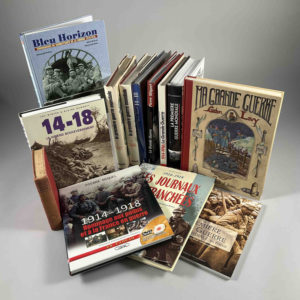 Samuel PEPYS Junior, A diary of the Great Warr (1920) ; Général J.E. VALLUY, La Première Guerre Mondiale, 2 tomes : de Sarajevo à Verdun et de Verdun à Rethondes ; Gaston LAVY, Ma Grande Guerre ; Pierre MIQUEL, 14-18, 1000 photographies inédites ; Pierre MIQUEL, La Grande Guerre illustrée ; Jean-Noël GRANDHOMME, La Première Guerre Mondiale en France ; Coll. La Grande Guerre, 1914-1916 ; Coll. Bleu Horizon, témoignages de combattants de la guerre 1914-1918 ; J.H.J. ANDRIESSEN, La Première Guerre Mondiale ; J. WINTER & B. BAGGETT, 14-18 le grand bouleversement ; Pierre MIQUEL, 1914-1918 Hommage aux Poilus et à la France en guerre ; Jean-Pierre TURBERGE, 1914-1918 Les journaux de tranchées la Grande Guerre écrite par les Poilus.