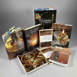 [OBJETS D'ART - LUMINAIRES] - HUIT OUVRAGES : - De Bernard MAHOT : Les chandeliers et bougeoirs; Les lanternes, phares et fanaux; Les lampes à essence; Les lampes à pétrole et Les lampes à huile. - Philippe DEITZ, Histoire des luminaires,...