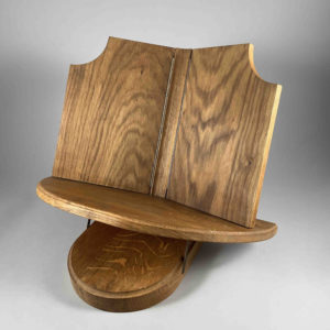 LUTRIN de table en chêne mouluré. La base de forme ovale accueille un plateau hémisphérique muni de deux volets à charnières à ouverture réglable. XXe siècle. Hauteur : 33 cm. Largeur : 55,5 cm. Profondeur : 49,5 cm.