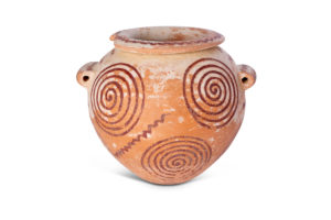 EGYPTE — Vase à panse piriforme et à lèvre éversée, muni de deux anses tubulaires, peint d’un motif de spirales et de vaguelettes.