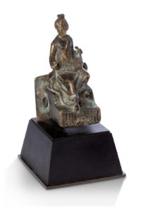 ART ROMAIN — Statuette représentant la déesse Flore (?) assise sur un trône.