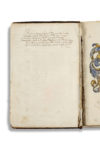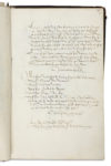 On trouve au verso, un ajout manuscrit de la même main que le feuillet de titre une présentation de chacun des chapitres avec le lieu et la date où ils étaient tenus ainsi que la liste des chevaliers « trépassés » depuis le chapitre précédent et celle des chevaliers nouvellement « élevés ». PROVENANCE - Ex-libris aux armes imprimées et réhaussées à la gouache sur peau de vélin au contreplat supérieur et au contreplat inférieur un second imprimé et rehaussé avec l’emblème « Vita mortalium Vigilia » enrichi du blason et du nom de Viglius van Aÿta (1507-1577). L’ouvrage a vraisemblablement été réalisé à sa demande ou pour lui. Il fut l’un des trois conseillers principaux de Philippe II d’Espagne après avoir servi Charles Quint jusqu’à la paix d’Augsbourg. Il fût nommé en 1562 par Philippe II, chancelier de la Toison d’or (officier chargé de garder les sceaux de l’ordre, et de prononcer les discours aux chapitres). « On voit paraître aux environs de 1560 aussi un armorial manuscrit servant de Livre de l’ordre pour les membres, dont une dizaine d’exemplaires en majeure partie identiques ont été conservés. Ils empruntent leur forme aux armoriaux richement enluminés de l’époque précédente, mais non sans être beaucoup plus simples quant à leur exécution. Avec leur format de plus ou moins 30 centimètres, ils sont sensiblement plus grands que les livres des Statuts de naguère, mais ils ont été exécutés en papier et les armoiries y ont été appliquées sur des modèles imprimés préalablement de figures de bois » (voir Anne S. Korteweg « Les manuscrits des statuts », L’Ordre de la Toison d’or de Philippe le Bon à Philippe le Beau (1430-1505), p. 44). - Note manuscrite au contreplat inférieur en cursive du XVII e «Benedicte qui venit in nomine domini » (Cantus ID 006250) - Ex-libris armorié imprimé au contreplat supérieur des Ducs d’Arenberg : Armes du château de Nordkirchen avec ajouts manuscrits à l’encre noire des cotes «ms n° 91 » et «Nu 5254» et au verso du feuillet de garde. BIBLIOGRAPHIE La Toison d’Or, cinq siècles d’art et d’histoire. Catalogue de l’exposition, Bruges 14 juillet30 septembre 1962 - L’Ordre de la Toison d’or de Philippe le Bon à Philippe le Beau (1430- 1505). Idéal ou reflet d’une société, Bruxelles: Bibliothèque royale de Belgique, 1996.