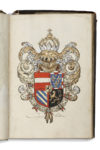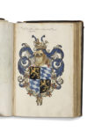 currens ; 242 blasons pleine page imprimés et rehaussés dont un entièrement peint; anciennes mouillures en marges extérieures des feuillets sans atteintes aux armes ni aux en-têtes manuscrites.