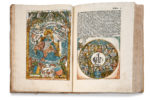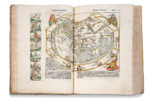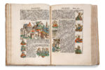 Première édition, latine, de la Chronique de Nuremberg, le plus célèbre incunable illustré. C’est l’un des livres imprimés les plus densément illustrés et techniquement avancés du XVe siècle.
