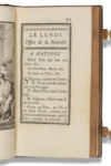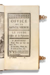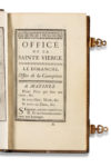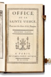 [POMPADOUR – BOUCHER] Office de la sainte Vierge pour tous les Jours de la Semaine. Paris, Imprimerie royale, 1757. — 2 volumes in-12 (84 x 155 mm), (4)-237 pp., (4)-198 pp., et 8 dessins à l’encre à pleine page hors texte.