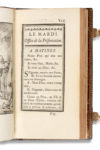 Exemplaire (n° 32 du catalogue) acquis à la vente de la bibliothèque de la Marquise en 1765 par la Duchesse de Gramont, sœur du Duc de Choiseul, pour 53 livres, adjudication la plus élevée de la vente ; Maurice Loncle (Bibliothèque M. L., Paris, 10 et 11 décembre 1963).