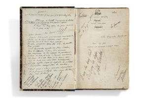 DAUDET Alphonse (1840-1897) — CARNET autographe signé, Sapho, [1883] ; carnet in-8 de 184 pages (14 x 9,5 cm) ; reliure d'origine à dos de toile bleue ; étui de maroquin vert en forme de livre.