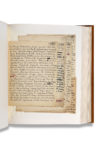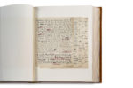 Publiée à Paris chez Fasquelle en 1901, et simultanément en traduction à Berlin, Amsterdam, Londres et New York, La Vie des abeilles remporta aussitôt un grand succès, avec des traductions en seize langues. C’est en 1900, à Passy et en Normandie à Gruchet Saint-Siméon, que Maeterlinck, influencé par Jean-Henri Fabre, commença une longue étude sur les abeilles, inspirée par « vingt années d’apiculture », depuis sa jeunesse dans la maison de campagne familiale à Oostacker, près de Gand. Pour ses observations, Maeterlinck avait fait confectionner une ruche dont une des parois était transparente. Le livre a été salué notamment par Rainer-Maria Rilke et par Jean Rostand : «Maeterlinck, par la vertu de son génie, fera entrer dans le patrimoine littéraire un peu de l’âme du naturaliste… Qui a lu La Vie des abeilles en reste à jamais imprégné »… Le manuscrit est écrit à l’encre bleu noir au recto de feuillets de papier ligné tirés d’un cahier. De nombreux feuillets ont été en partie découpés et recollés à l’aide de papier gommé au dos, témoignant (ainsi que les changements de pagination) d’un important travail de remaniement, certains feuillets comptant jusqu’à huit fragments mis bout à bout (32 cm).