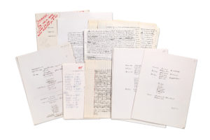 ▬ On joint : un tapuscrit de 19 lipolepses préparé pour l’impression, sous le titre Poèmes, dans La Nouvelle Revue Française en janvier 1974 (21 ff. in-4, 3 corrections autographes) ; le tapuscrit complet du recueil préparé