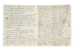 [Paris] 4 ventose (22 février 1795). Sur ses négociations avec sa tante Mme de Villeneuve concernant sa terre de Mazan. Il réagit à « l’indecente proposition » que lui fait sa tante. « Cependant, voyés la sur le champ, je dis plus, tatés lui le poulx et si vous imaginés qu’elle ne puisse pas aller à deux ans conclués sur le champ. […] quoique je refuse, je vous laisse pourtant le maitre d’accepter si vous jugés que son état soit tel que le marché devienne bon pour moi ; […] il faut affermer Mazan huit mille francs par an à cause des assignats, et si cela est, comme cela doit être, Md de Villeneuve [Henriette-Victoire de Martignan, marquise de VILLENEUVE, sa tante] avec ses 15000 ne mettra que deux années, or m’assurés vous qu’elle mourra dans deux ans, c’est ce que je ne crois, ni ne desire, si cependant vous le croyiés, terminés ; puisque vous la verrés vous êtes plus à même de décider cela que moi, et je m’en rapporte absolument à vous ». Il évoque ses droits à la succession Murs : « mais vos torts de n’avoir pas fait acte de representation dès qu’il a eu les yeux fermés, n’en sont pas moins réels. Et après tout ce que vous m’aviés promis sur cela, je ne conçois pas comment vous vous étiés endormi ; […] réveillés sur le champ cette affaire je vous conjure ; et tirés moi de là tout ce que vous pourrés, […] dites moi pourquoi vous êtes vis-à-vis de moi resté en silence sur un objet aussi important que celui de cette succession, cela me tourne la tête. J’en suis toujours à n’avoir encore reçu que 1300 sur les 2400 annoncés », et il a besoin d’argent… Il est accablé de lettres par un Sade de Cucuron : « il dit que j’ai beaucoup de crédit, il se trompe fort ; je suis tout au plus l’ami d’une femme qui en a mais que diable veut il que je fasse pour lui ». Il se plaint des « impertinences » de la Soton (une fille de La Coste) : « si elle persiste, elle ne sera pas longtemps à aller à l’hopital ». Puis il revient sur la terre de Mazan : « il s’agit d’affermer, et certes je n’affermerai pas Mazan moins de huit mille francs en assignats, ou quatre mil francs en ecus, […] il y a trop longtemps que je suis dupe des fermiers, je ne veux plus l’être »...