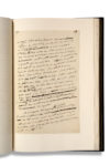Ces trois manuscrits, à l’encre brune au recto de grands feuillets sans marge, le troisième sur un papier différent des deux autres, ont servi pour l’impression de la Revue des deux mondes, comme le montrent les indications et les noms des typographes portés sur plusieurs pages. Ils présentent de très nombreuses ratures et corrections (près de 1750), des additions (dont témoignent notamment les changements de pagination), et des passages biffés et supprimés, comme celui-ci à la fin de La Canne de jonc, après la phrase « L’Honneur c’est la Pudeur virile » :