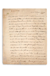 VOLTAIRE (1694-1778) — L.A.S. «V», aux Délices 10 mars [1759], à son ami Nicolas-Claude THIERIOT ; 2 pages in-4 (marques de plis, petites fentes réparées).