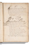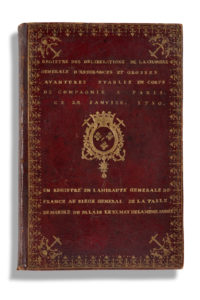 REGISTRE manuscrit, Registre des délibérations de la Chambre générale d’assurances et grosses avantures…, 1750-1751; un volume in-fol. de 248 feuillets paraphés, dont 12 seulement écrits, maroquin rouge à dentelles sur les plats avec...