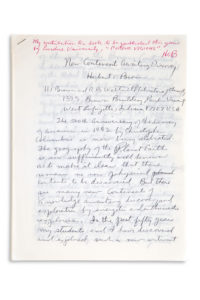 Ce texte, qui veut témoigner de l’importance de la recherche universitaire, fut destiné (comme l’indique une note au stylo rouge en tête) à un ouvrage collectif publié par l’Université de Purdue, Purdue Visions . Brown y évoque ses études, sa dette envers le professeur Julius STIEGLITZ et envers sa fiancée dans le choix d’étudier le borane dans le cadre de son doctorat, et l’exploration de ce nouveau « continent » avec ses élèves, avec pour résultat le Prix Nobel de chimie, et la promesse de révolutionner l’industrie pharmaceutique… Il y a sûrement d’autres continents du savoir qui attendent d’être découverts par de jeunes chercheurs enthousiastes et optimistes, à qui il souhaite bonne chance !...