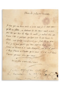 Au bas de la lettre, une note autographe signée de la comtesse de Buffon certifie l’authenticité de cette lettre de son beau-père.
