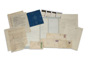 Princeton 13 avril 1934 (Beer est à Londres) Il a appris de son collègue Russell, à son grand regret, que ses efforts afin d’obtenir pour Beer un travail astronomique en Amérique n’ont pas été couronnés de succès. Qu’il le tienne au courant de ses démarches. Il est prêt à écrire n’importe où en sa faveur. Old Lyme (Connecticut) 3 juillet 1935 (Beer est au Solar Physics Observatory de Cambridge). Il lui conseille d’envoyer ses travaux les plus récents au professeur Howard Shapley, Harvard College Observatory, Harvard University, et de lui expliquer sa situation. On joint un tapuscrit signé de Rudi W. MANDL, New Proof of the Einstein Theory (2 p. in-4, note autographe d’Einstein au verso), avec diagramme tiré en bleu, plus 2 notes dactyl. ; et 3 L.S. d’Helen DUKAS, la secretaire d’Einstein, Princeton 1934-1936, à Rudi Mandl (enveloppes)