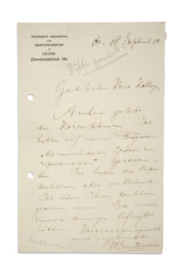 L.A.S. «W. Einthoven », Leiden 18 septembre 1912, à un collègue ; 1 page in-8 à en-tête Physiologisch Laboratorium der Rijks-Universiteit te Leiden (trous de classeur) ; en allemand.