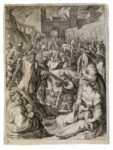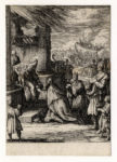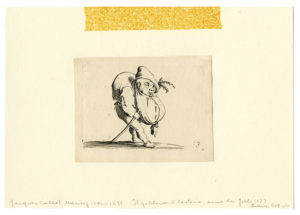 1) Jacques (Jacob) De Gheyn II (Anversa, 1565-L'Aja, 1629). Cristo portacroce sulla via del Calvario. 1596-1598. Bulino. mm 145x108. New Hollstein, 45. In basso a sinistra "KVMandere inuen / DGheÿn schulp et ex", sotto nel margine il numero "9". Da La Passione, serie in 14 tavole su invenzioni di Karel van Mander. 2-4) Jacques Callot (Nancy, 1594-1635). Adorazione dei Magi. Acquaforte. mm 100x70. Lieure, 671. Avanti la lettera al margine inferiore. Sacra Famiglia con sant'Elisabetta e il Battistino, Acquaforte. mm 92x68. Lieure, 672. Gobbo con bastone da passeggio. Acquaforte. mm 63x90. Foglio: mm 78x102. Lieure, 409. Da Varie figure gobbi di Iacopo Callot. 1621-1625. II stato su 2 dopo la comparsa del numero "3" in basso a destra. 5) Ludovico Mattioli (Crevalcore, 1662 - Bologna, 1747). Studio di gambe. Acquaforte. mm 201x151. Foglio: mm 340x233. Da Studio di Pittura ad uso de' Licei. 1750 ca. 6) Pierre Charles Trémolières (Cholet, 1703-Parigi, 1739). Studio di nudo maschile. Acquaforte. mm 188x280. Foglio: mm 235x318.