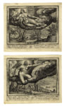 Bulino. mm 150/152x170/174. Foglio: mm 170/174x205/208. Hollstein (Johannes Sadeler I), 509-512. Serie completa ed omogenea in quattro tavole dedicate a Le parti del giorno tratte in controparte da originali incisi nel 1582 da Johannes Sadeler su invenzioni di Dirck Barendsz (Amsterdam 1534 -1592). Al primo foglio raffigurante l'Aurora, in basso, excudit di Jean le Clerc. Ottime prove impresse con segno brillante e bella tonalità su carta vergellata sottile priva di filigrana.