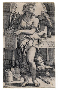 Bulino. mm 89x55. Bartsch, 124. Hollstein, 126. Quarta tavola dalla serie Le sette arti liberali (Hollstein, 123-129). Ottima impressione nell'unico stato censito su carta vergellata sottile priva di filigrana.