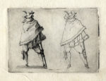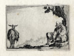 Acquaforte. mm 55/58x81/83. Foglio: mm 98x140. Lieure, 215/227/228/243/249/258/261/. Sette tavole da Capricci di varie figure serie di 50 piccole acqueforti, compreso frontespizio e dedica a Lorenzo de Medici, incisa per la prima volta durante il soggiorno fiorentino attorno al 1617 e nuovamente a Nancy nel 1621. Bellissime prove in tiratura omogena dall'edizione incisa a Firenze, impresse con inchiostrazione brillante ed evidente tonalità su carta vergellata priva di filigrana.