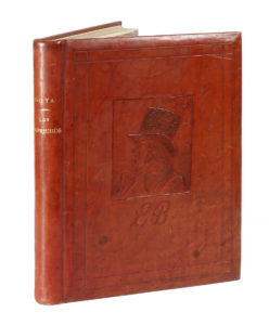 In-4° (mm 360x270). Foglio: mm 348x244. Harris, 36-115. Serie completa e omogena in 80 tavole all'acquaforte, acquatinta, puntasecca e bulino, ciascuna numerata in alto a destra e titolata in basso entro l'inciso. IX edizione di 12, realizzata nella Calcografia per la Real Academia tra il 1908 e il 1912 e limitata a 180 esemplari. Impressioni in bruno su carta spessa lievemente rigida, alcuni fogli con filigrana "José Guarro e ritratto di Goya". Elaborata legatura in pieno cuoio, titolo in oro al dorso, con impressi a secco, al piatto anteriore il ritratto di Goya con la data della morte "1928", e in alto a destra simbolo con triangolo e lettera "Q" (Qoph), il tutto entro riquadro; al di sotto il monogramma "E.B" . Contropiatti con cornice in cuoio impressa a decori floreali e sguardie in carta marmorizzata. Al piatto posteriore si trova impressa la firma del primo possessore e committente di questa elaborata legatura, Julio Alvares del Vayo: uomo politico e pubblicista spagnolo (Villaviciosa de Odón 1891-Ginevra 1975) fu esponente del partito socialista, sindacalista della U.G.T. e deputato nelle legislature del periodo repubblicano (dal 1931), fu ambasciatore in Messico e ministro degli Esteri nel governo di Largo Caballero (1936-37), poi rappresentante spagnolo presso la Società delle Nazioni e di nuovo ministro degli Esteri, con Negrín, dal 1938 alla fine della guerra civile. In esilio dal 1939, ha pubblicato interessanti memorie (Freedom's Battle, 1940; The Last Optimist, 1949). Instancabile sostenitore delle resistenze nazionali anticolonialiste nel mondo, suo è l'intervento presso le Nazioni Unite per l'ingresso della Cina Popolare nell'O.N.U. Dal 1971 fino alla morte fu presidente del FRAP (Frente Revolucionario Antifascista Patriótico). Muore a Ginevra nel 1975. Sovracoperta con alette in tela cartonata simil pelle di colore rosso cupo con titolo in oro al dorso. Bellissimo esemplare di valore storico e politico.