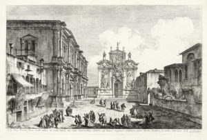 Michele Marieschi, Aedis Divi Rocchi facies rudis adhuc ex cocto latere, nec sectis marmoribus obducta: ad laevam magnum sodalitium eidem Sancto dicatum, et studio Sebastiani Serlij constructum (Campo S. Rocco). 1739 [Venezia: 1741].