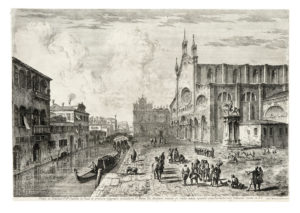 Acquaforte. mm 306x438. Succi (1987), 8. Succi (2013), p. 249. Nel margine inferiore al centro il titolo in latino, a destra "Mich.l Marieschi del.t et inci.t". Tavola da Magnificentiores Selectioresque Urbis Venetiarum prospectus,... serie di ventuno grandi vedute di Venezia pubblicata per la prima volta nel giugno 1741. Bellissima impressione nel I stato di 4, prima di "N.°15" in basso a sinistra e di numerosi tratti a bulino, stampata con segno brillante su carta vergellata veneta con frammento di filigrana non identificabile.