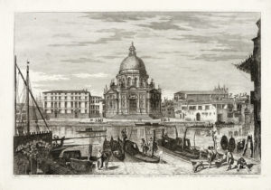 Michele Marieschi, Templum S: Mariae Salutis Cleric: Regul: Congregationis a Somascha, cum eorundem Coenobio ad laevam, et Divi Gregorij Templo hinc ad dexteram sub Abbatis ditione (La Salute). 1741 [Venezia: 1741].