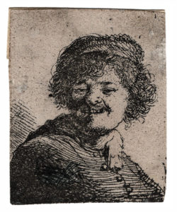 Rembrandt Harmenszoon van Rijn, Autoritratto sorridente con cappello. 1630 [XVIII secolo].