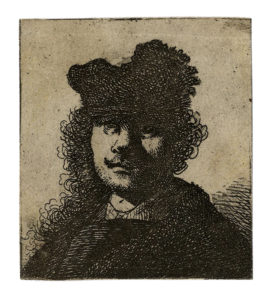 Rembrandt Harmenszoon van Rijn, Autoritratto con berretto e mantello scuro. 1631 ca.