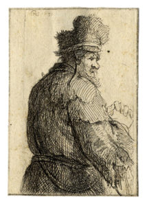 Acquaforte con ritocchi a puntasecca. mm 72x42. Foglio: mm 73x50. White & Boon, 143. New Hollstein, 33a. Ottima prova, di questa rara e precoce incisione nel III stato di 4 per White e Boon; nel VII stato di 7 per New Hollstein, con tratti leggeri aggiunti sulla guancia e alla tempia, tratteggio incrociato sul mantello, nella parte posteriore del berretto e sul collo, ombreggiature sul colletto bianco. Si segnalano leggerissimi ritocchi a matita, e l'aggiunta del monogramma di Rembrandt e la data "1631" in alto a sinistra. Carta vergellata sottile priva di filigrana.