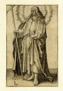 bulino. mm 115x73. New Hollstein, 95. Con la lettera "L" in basso a sinistra. Decima tavola da Cristo, san Paolo e i dodici apostoli, serie in quattordici bulini databile al 1510 ca. Bellissima prova nell'unico stato impressa su carta vergellata sottile priva di filigrana. In alto al verso parzialmente coperta da nastrino cartaceo, nota di possesso a penna e inchiostro bruno di Pierre Mariette (Lugt, 1789) con la data "1684" e più in basso marchio di collezione a inchiostro nero con "lettere JC in cerchio".