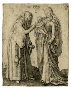 Lucas Van Leyden, La Vergine col Bambino e sant'Anna che porge una mela. 1516