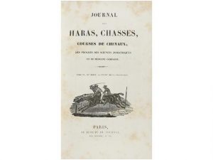 1841. (EQUITACION). JOURNAL DES HARAS, CHASSES, COURSES DE CHEVAUX, DES PROGRES DES SCIENCES ZOOIATRIQUES ET DE MEDICINE COMPAREE. Paris: Imp. Scheider et Langrand / Au Bureau du Journal, 1841. 4°. 416 p. y 8 laminas. Enc. de época en media piel.
