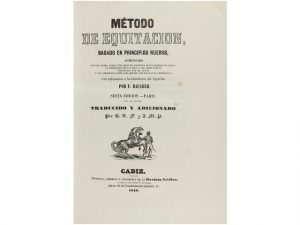 1848. (HIPICA). BAUCHER, F.: METODO DE EQUITACION, BASADO EN PRINCIPIOS NUEVOS, AUMENTADO CON UNA TEORIA ACERCA DEL MODO DE MANTENER BUENA POSICION EL JINETE; LA ESPLICACION DE LOS DIEZ Y SEIS AIRES NUEVOS INVENTADOS POR EL AUTOR. Cadiz: Imp. de la...
