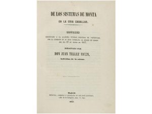 1857. (EQUITACION). TELLEZ VICEN, JUAN: DE LOS SISTEMAS DE MONTA EN LA CRIA CABALLAR. Madrid: Imp. de Don José Gonzalez, 1857. 4°. 128 p., 1 h. Enc. de época en media piel. Costes jaspeados.