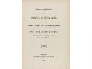 1858. (EQUITACION). HIDALGO Y TERRON, JOSE: TRATADO DE EQUITACION Y NOCIONES DE VETERINARIA O SEA IDEA GENERAL DE LOS CONOCIMIENTOS QUE DEBE REUNIR TODO HOMBRE A CABALLO. Madrid: Imp. Militar de Don Pedro Montero, 1858. 8°. 315 p., 1 h. 3 laminas...