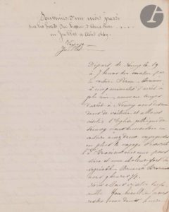 Cahier ligné de 18 pp., encre brune. Couverture de papier bleu. Non relié.