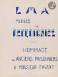 Ce recueil de dessins et de témoignages manuscrits des plus émouvants fut rassemblé après la guerre et offert à l’un des directeurs de Vallourec, Monsieur Maurice Favart, pour remercier l’homme et l’entreprise des colis et attentions envoyés pendant la détention dans plusieurs stalags d’employés de Vallourec. Il est impossible de citer tous les textes, tous plus touchants les uns que les autres, composés juste au lendemain de la libération. L’un, assez court, donne la teneur de ces textes : « Lorsque nous étions, là-bas, loin de la France / Ces colis si précieux, crevant les barbelés / Aide si attendue, apportaient la santé / Et faisaient, plein d’espoir, attendre la délivrance / Elle est enfin venue, et je veux dire ici / A tous qui ont œuvré pour nous aider, Merci ! » [signé] Marcel Malouin (?). Stalag XII F.
