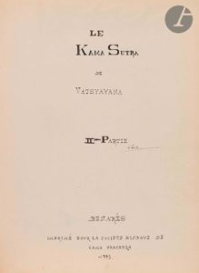 Le Kama Sutra de Vatsyayana. Iere [-4e] partie. Bénarès, imprimé pour la Société Hindoue de Kama Shastra en 1883. Pour la circulation privée seulement.